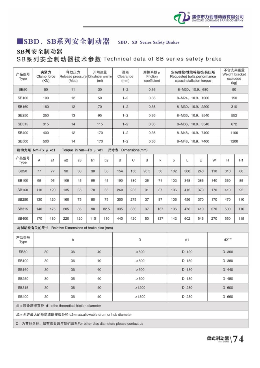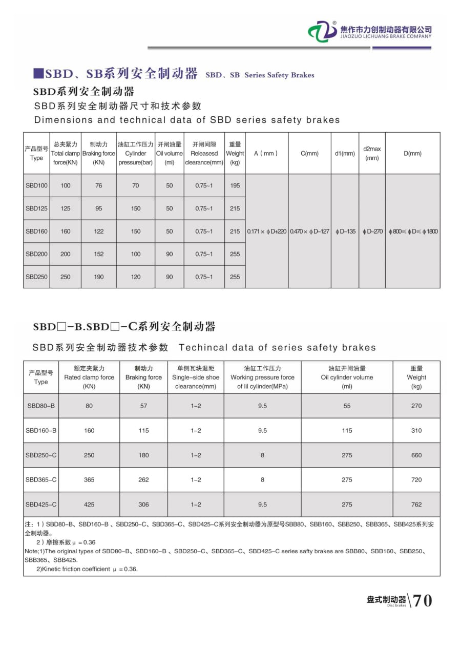 SBD SB系列安全制動器